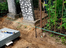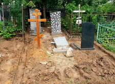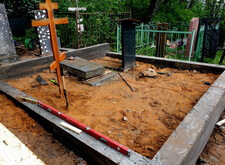 Затем наступил самый ответственный этап работы: монтаж ограждение. Работа по его установке опять-таки заняла достаточно долгое время, однако в результате чего по периметру могилы была установлена достаточно высокая статусная металлическая ограда, сразу же выделяющая место захоронения на фоне других участков. На фотографиях ниже представлен окончательный внешний вид могилы с разных ракурсов на момент завершения работ.
