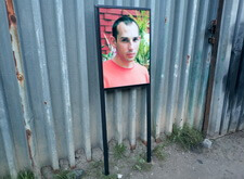 Портреты были изготовлены отдельно, а рамки сварены из надёжного прямоугольного профиля. Металл окрашен в чёрный цвет.