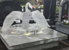 Очень сложная и интересная работа по созданию уникального мемориального комплекса. Он на столько уникальный и запоминающийся, что если на Троекуровском кладбище (богемное кладбище Москвы), где установлен этот комплекс, вы спросите у любого служащего где находится могила с лебедем, вам легко покажут дорогу.