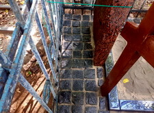 Памятник выставлен, по желанию клиента на участке остался деревянный крест. Так выглядит промежуточный этап работы (фотографии были сделаны пока замытая брусчатка сохла).